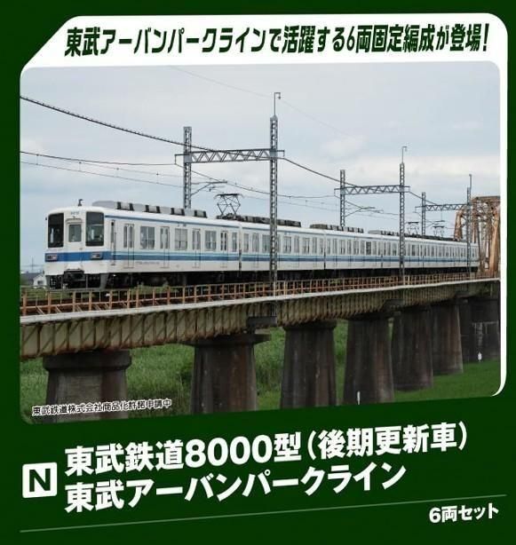 1基のみ装備したパンタグラフが特徴のモハ8800を新規に作成し、野田線(東武アーバンパークライン)で活躍する6両編成を、現在も活躍する「東武アーバンパークライン」ロゴが入っている編成と、それ以前の形態をそれぞれ製品化いたします。