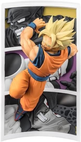 「ピッコロ大魔王」「フリーザ 第四形態」「セル 完全体」の歴代の敵たちが背景に描かれた「スーパーサイヤ人孫悟空」のイラストを立体化!「孫悟空」のフィギュアはもちろんのこと、背景に描かれたキャラクターもレリーフにより再現!