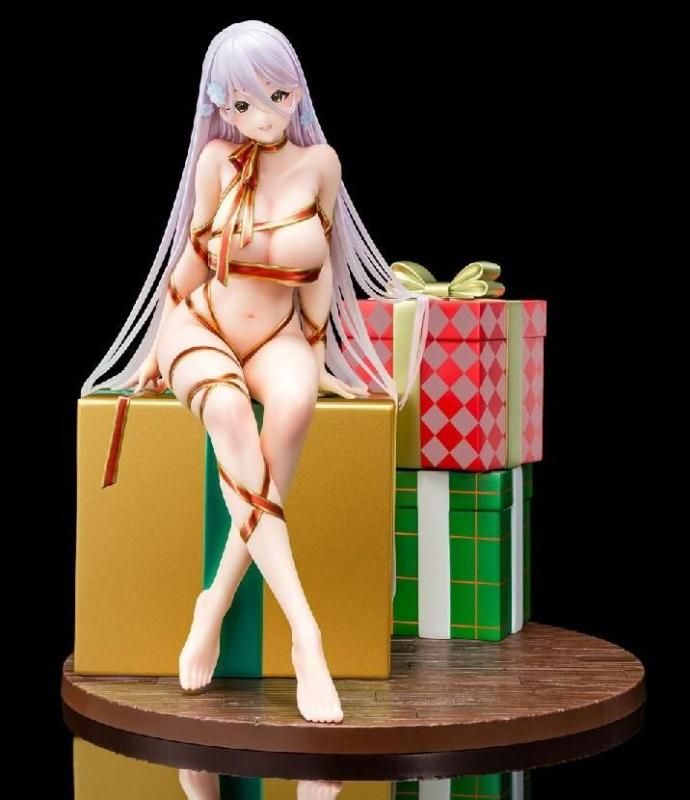 今回はそんな柾見先生が描かれた『マリヤ』を立体化いたしました。先生曰く「クリスマスイブの夜、みんなが寝静まったころに良い子の所に来てくれるプレゼントの精霊です。リボンがお肉に食い込む感じも、緩まって隙間が出来ている感じもどっちも捨てがたいので両方入れちゃえ!と思い描いたものです。」とのこと。先生の描かれたマリヤの細く引き締まりつつもたわわに実った肉体と、その各所に食い込むリボンの魅力、マリヤが腰掛けたり背後に浮かぶ巨大なプレゼントボックス、そこに絡みつく半透明のつややかな銀髪までをフルデジタル造形で余すところなく立体化いたしました。