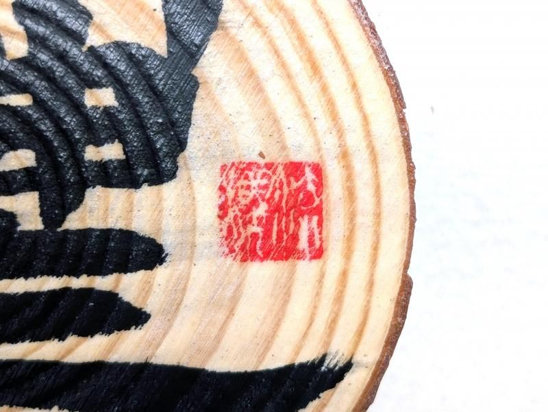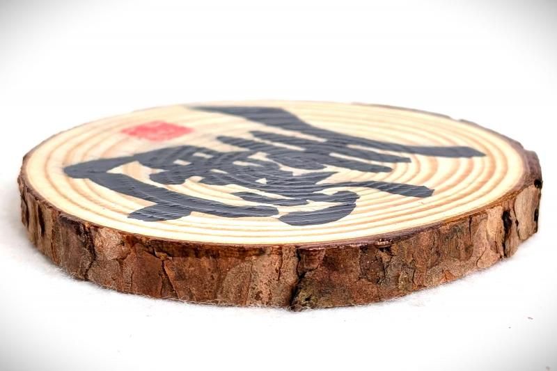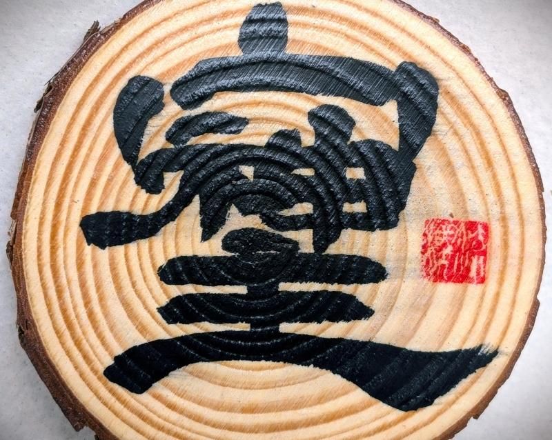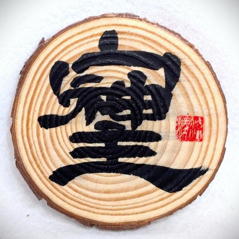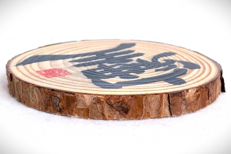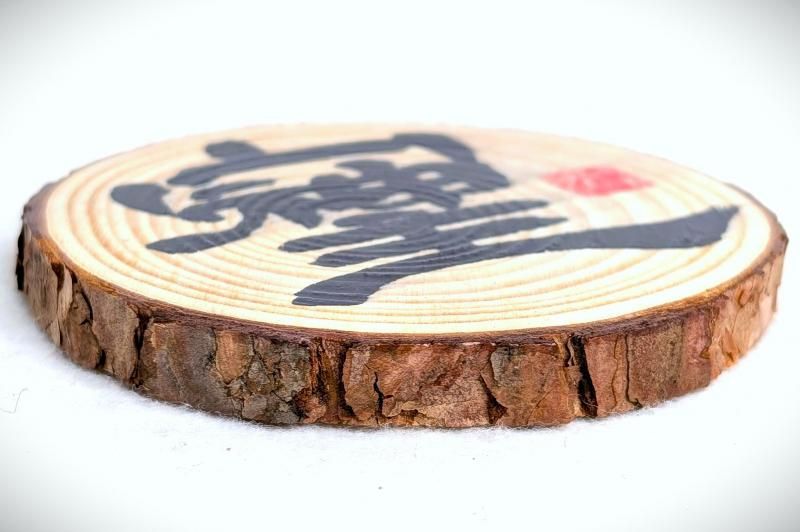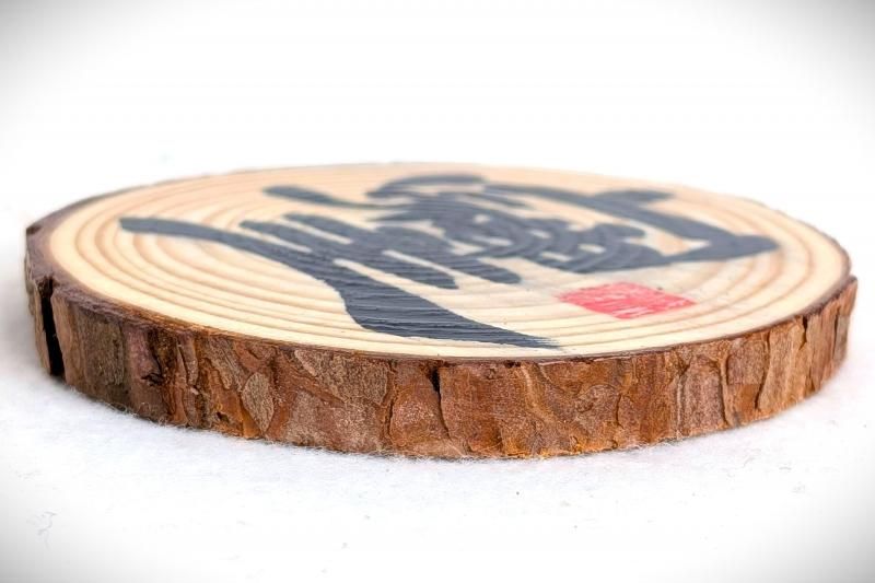 そして丁寧に書き上げられた秘文字「そしじ」の木製コースターです。